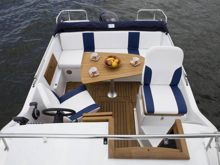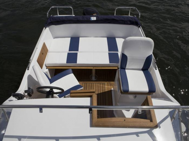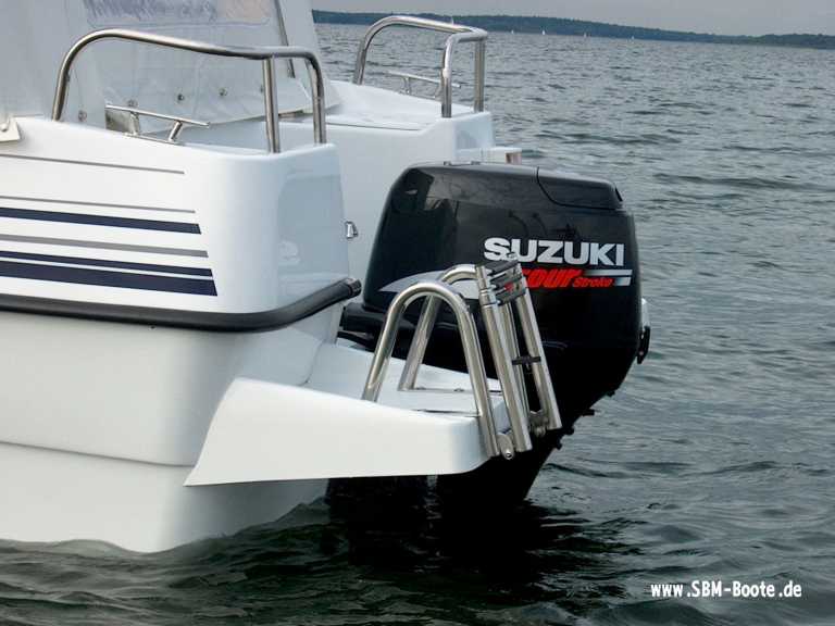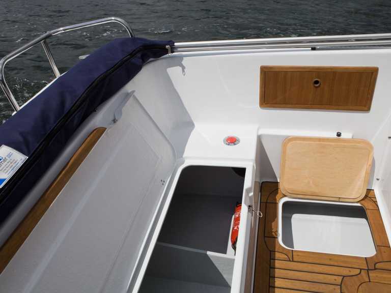 Ausrüstungspaket (Rettungsring mit Rettungsleine, 1 Bootshaken, 2 Paddel, 2 Anker mit Ankerleine, 4 Festmacherleinen, 2 Fender mit Fenderleinen, Ankerboje)