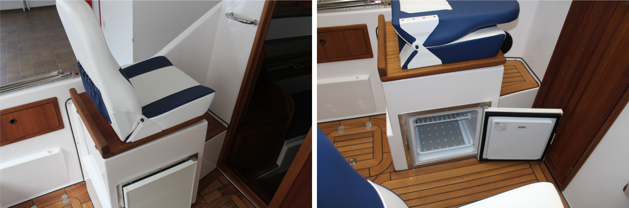 Kocherschrank auf der Beifahrerseite mit Beifahrersitz, Spüle und Kocher einflammig
